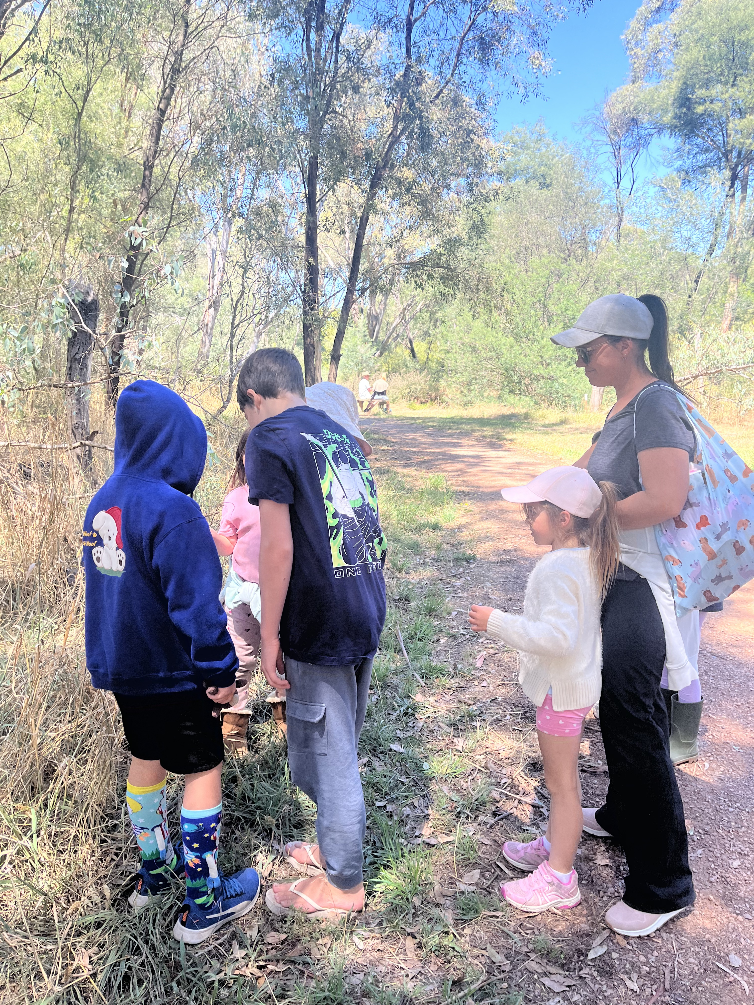 Our first gather was a blast! We got together for free play at our local Wetlands as we wondered around along the boardwalks and trails, among the reeds, giant gums and wildflowers.